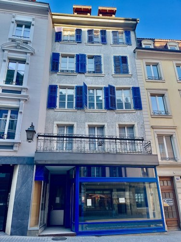 Ce local commercial sur 3 niveaux avec un grand balcon se trouve au rez-de-chaussée d'un immeuble de caractère de 4 logements.